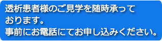 ・透析患者さんの見学受け付けております。お気軽にお問合せください。